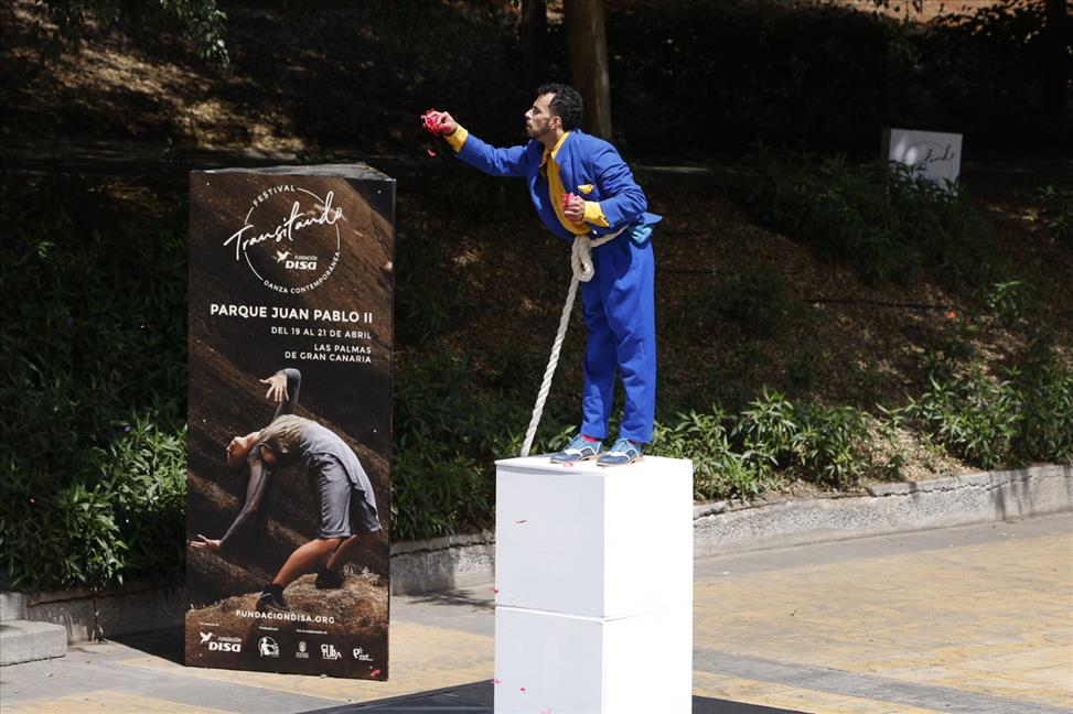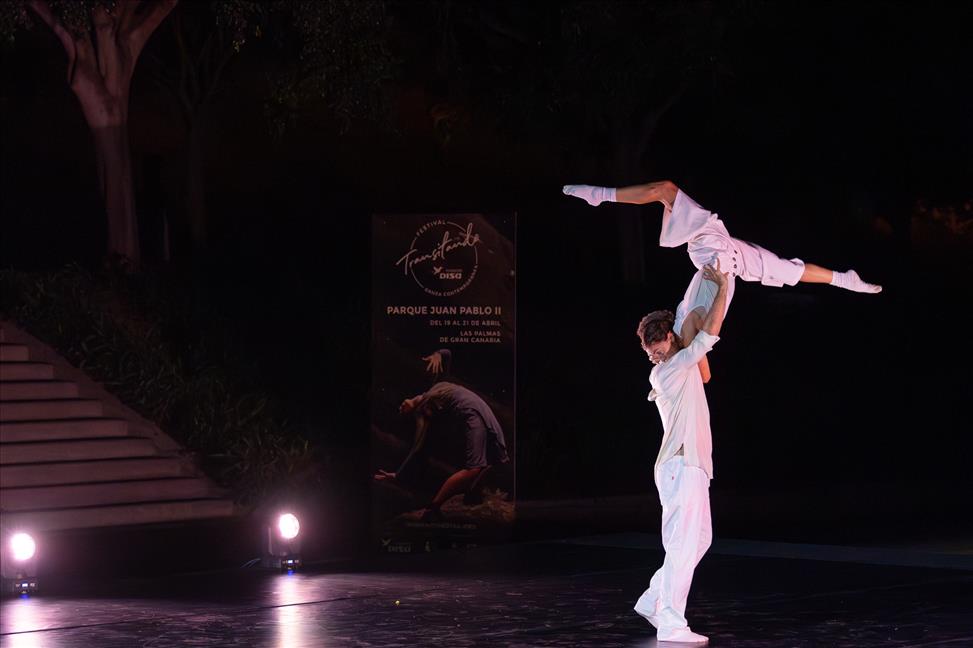 Durante la noche del viernes 19 de abril, «Les passants» (Cataluña) se encargó de abrir el Festival Transitando. Esta pieza creada e interpretada por Patricia Hastewell Puig y Noé Ferey, hizo vibrar al público a través de la danza contemporánea y el teatro físico, poniendo el foco en los misterios de las vidas ajenas. Siguió el grancanario Josué Espino y su pieza «Un gusto» que invitó al público a saborear caramelos durante el espectáculo para que junto a él transitaran desde el sabor al movimiento. «Ollos cara adentro» de la compañía vasca iXa e interpretada por Elena Castellanos y Marc Fernández, viajó por los sueños para abrir la puerta entre el mundo interior y exterior de los individuos. El cierre corrió a cargo de «Solos en el jardín», una propuesta creada e interpretada por Vanessa Medina y Adex Alonso de Natalia Medina Compañía de Danza, que puso sobre las tablas la manera en la que nos amamos y respaldamos.