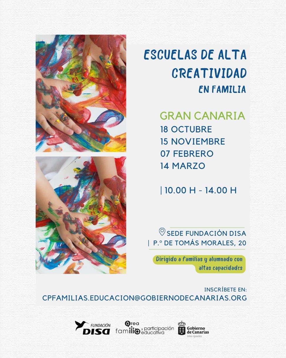 La Consejería de Educación, Formación Profesional, Actividad Física y Deportes del Gobierno de Canarias y la Fundación DISA impulsan la Escuela de Alta Creatividad en Familia, un nuevo proyecto educativo orientado a promover el desarrollo del talento, la creatividad y el bienestar emocional de niños, niñas y adolescentes con Altas Capacidades Intelectuales (ACI), a través de la participación activa de sus familias.